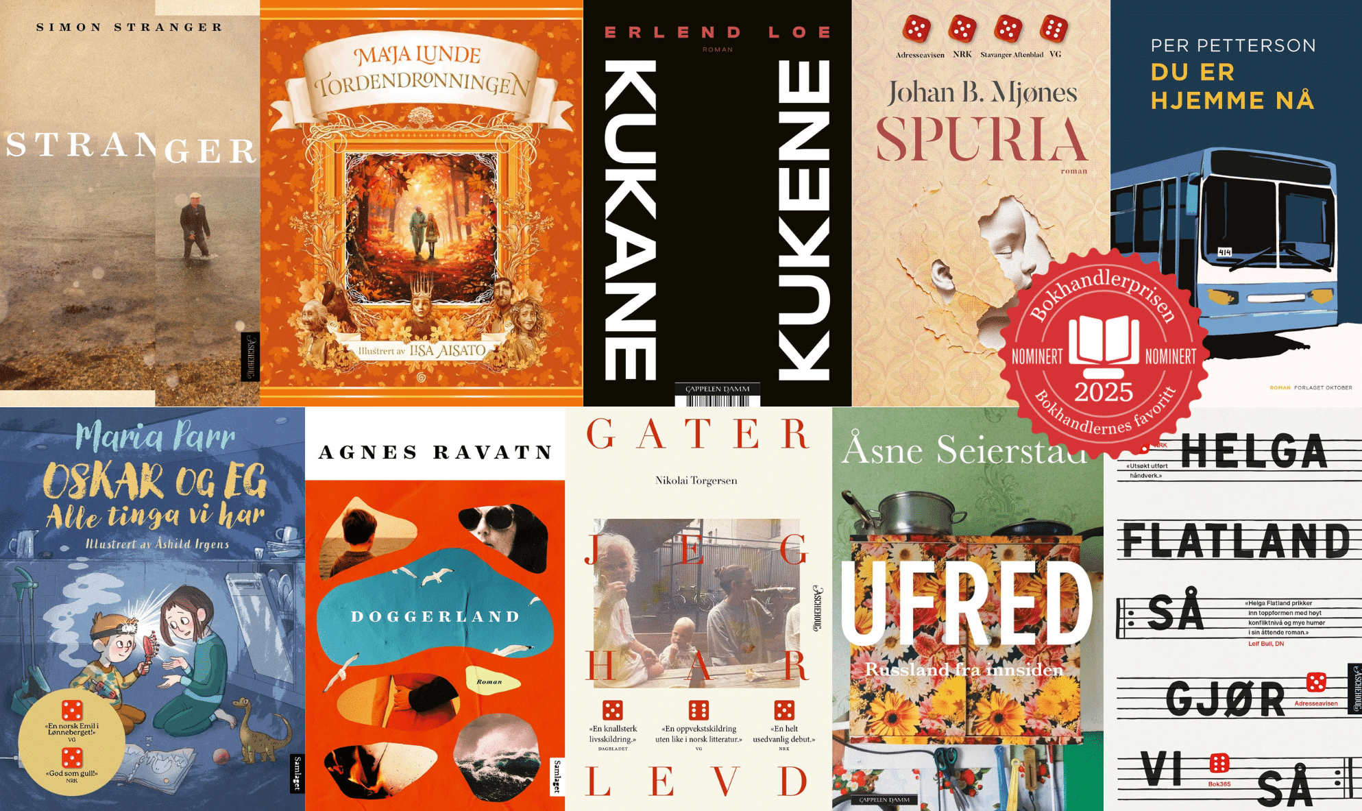 • Spenner bredt: Bokhandlerne har stemt på over 200 ulike titler. På lista over de ti nominerte finner vi både sakprosa, romaner og barnebøker – på både bokmål og nynorsk.